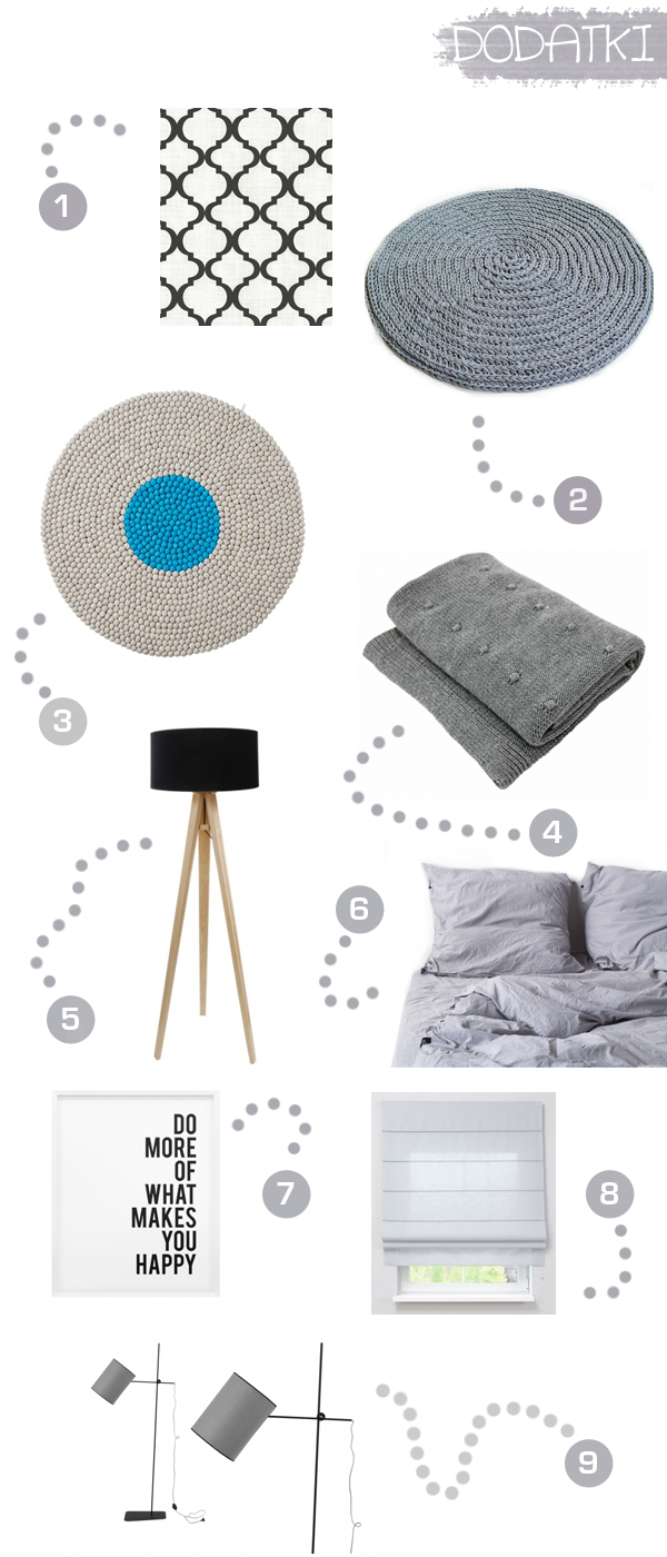 Projekt sypialni Add Comment projekty , sypialnia Edit Z naszego sklepu: 1. Biurko Grafo - TUTAJ 2. Fotel - TUTAJ 3. Betonowy Stolik - TUTAJ 4. Komoda - TUTAJ 5. Łóżko - TUTAJ 1. Tapeta - TUTAJ 2. Dywan Copenhagen - TUTAJ 3. Dywan okrągły - TUTAJ 4. Szary pled - TUTAJ 5. Lampa podłogowa - TUTAJ 6. Pościel - TUTAJ 7. Grafika - TUTAJ 8. Roleta rzymska - TUTAJ 9. Lampa Hobbit Floor - TUTAJ Poduszki dekoracyjne - TUTAJ Więcej grafik i plakatów - TUTAJ Share this: Related Articles
